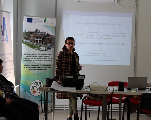 In addition, trainers presented the objectives of the EU funded project “BioEn4CoM Sign” including the establishment of a biomass supply chain for two selected kindergartens located in Telavi municipality.