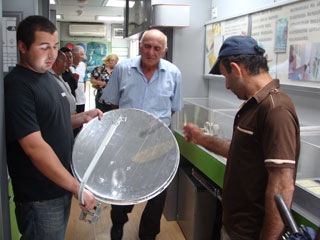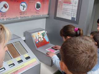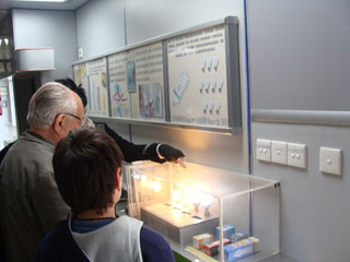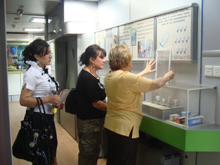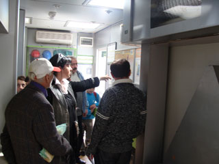 ენერგოავტობუსში გამოფენილი ექსპონატების დათვალიერება