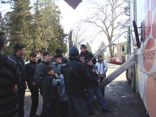 ენერგოავტობუსის ბიბლიოთეკა მნახველებს სთავაზობდა